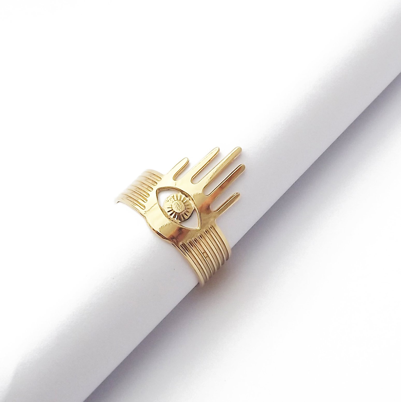 Bague Manojo réglable plaquée or 24 carats poinçonnée .