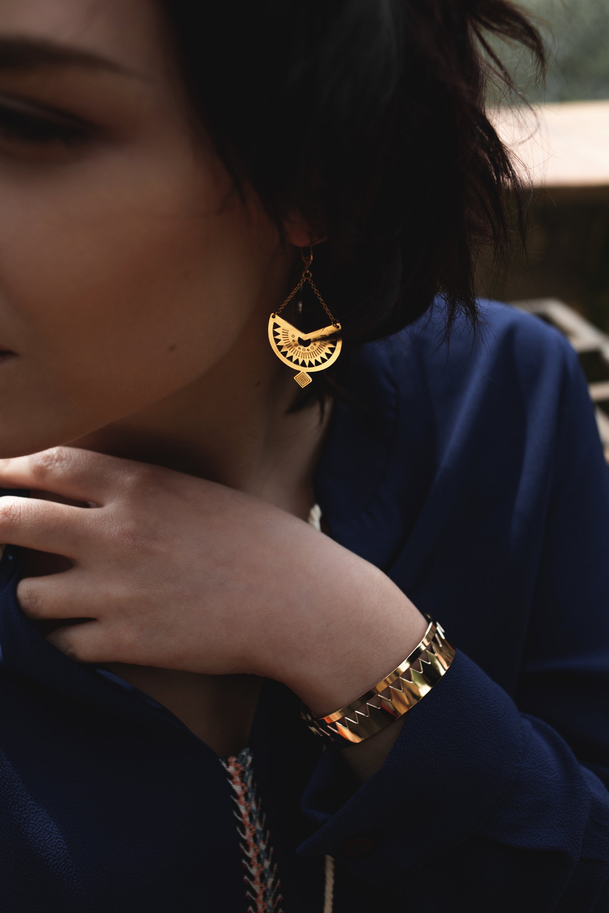 Boucles d'oreilles Mawu dorées à l'or fin 24 carats.