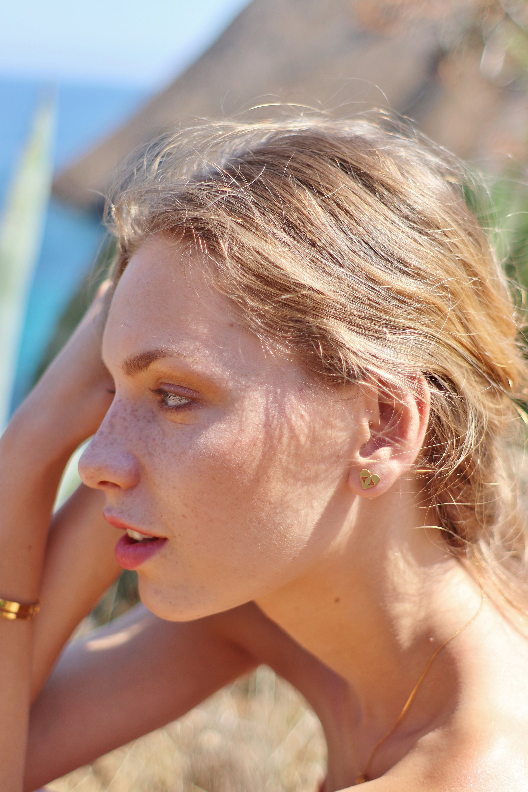 Boucles d'oreilles Corazon, puces dorées à l'or fin 24 carats.