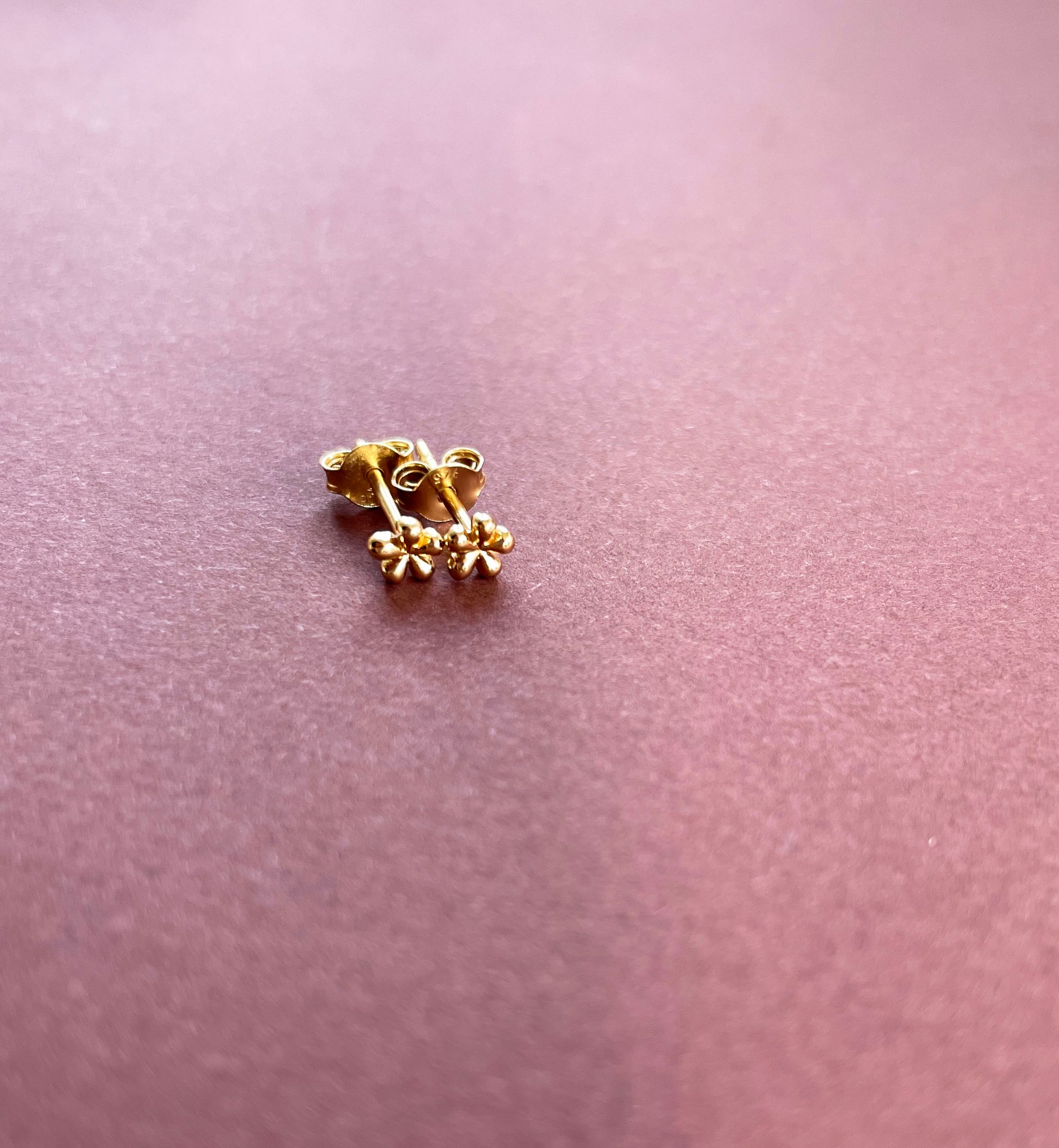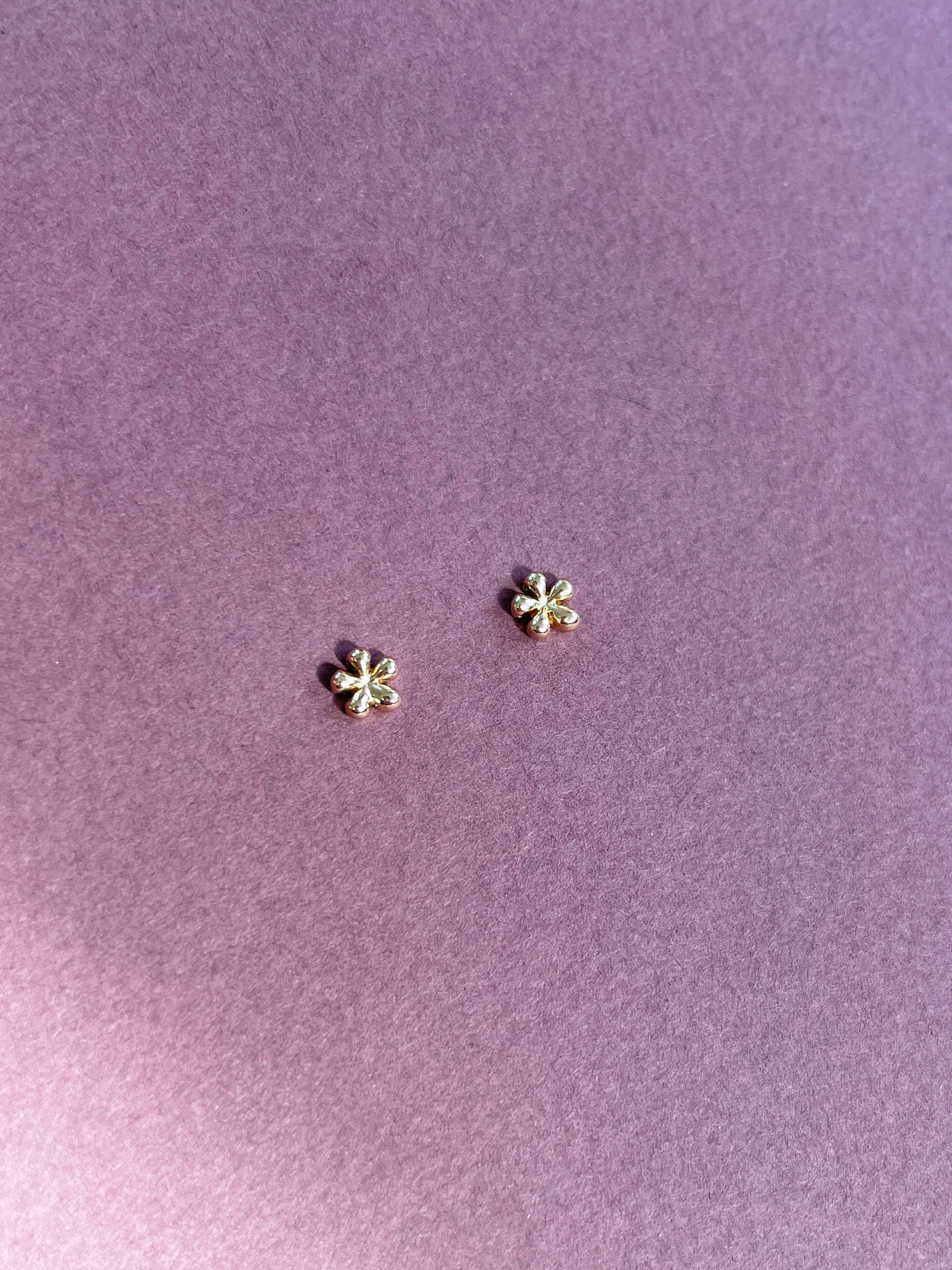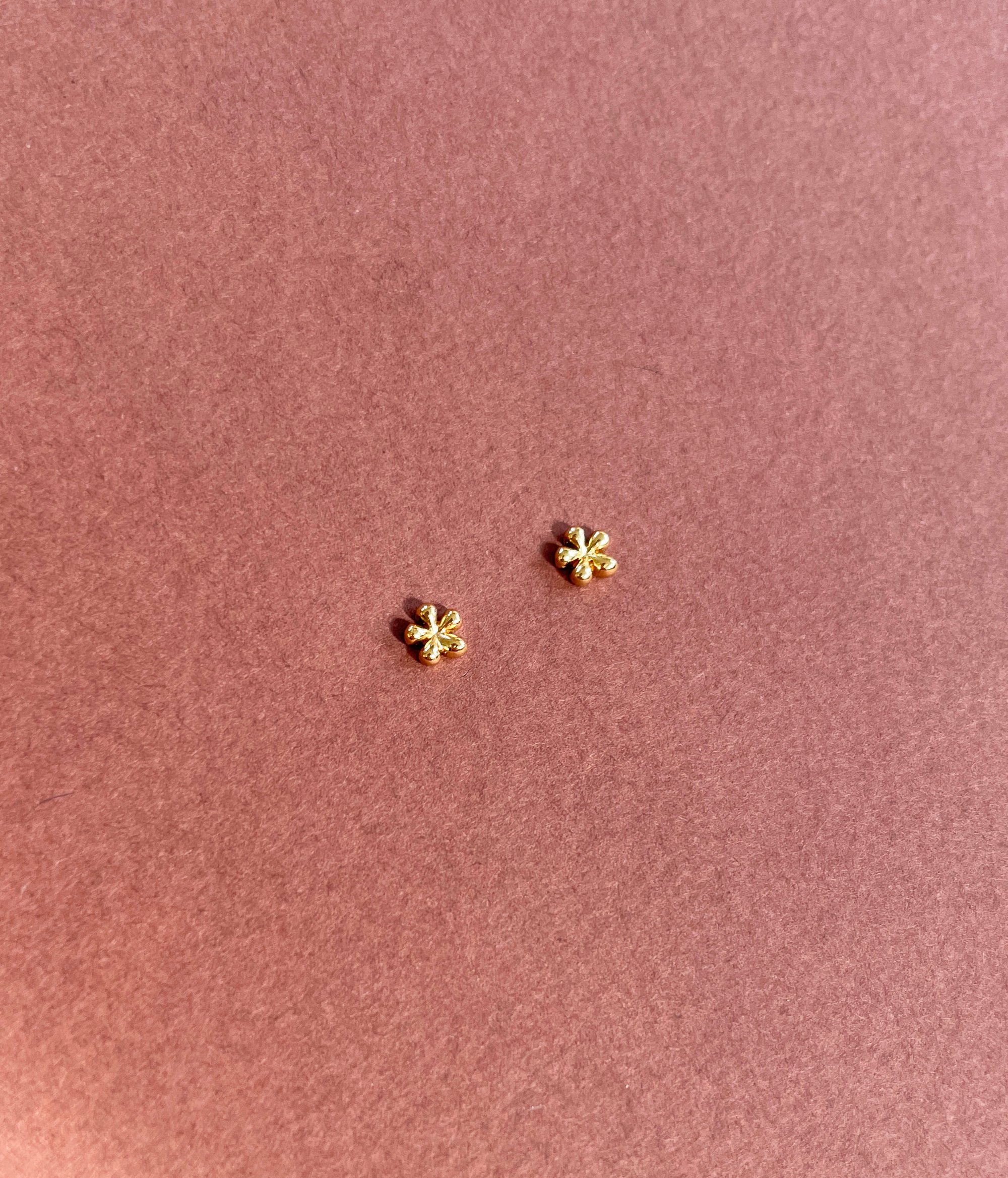 Mini puces en argent plaqué or, délicatement façonnées en petite fleur de 4 mm.
