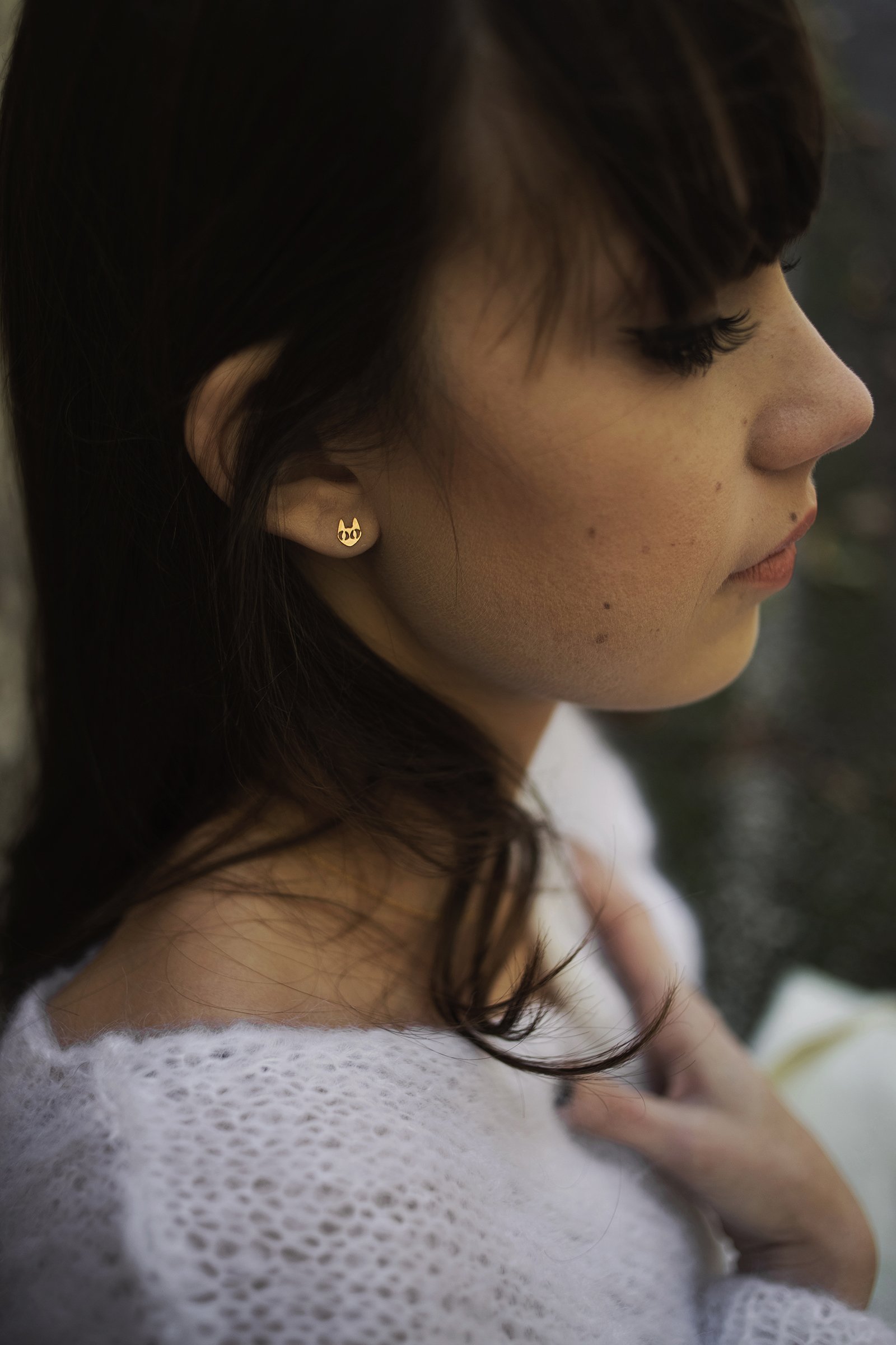 Boucles d'oreilles Mini chat en laiton doré à l'or fin 24 carats