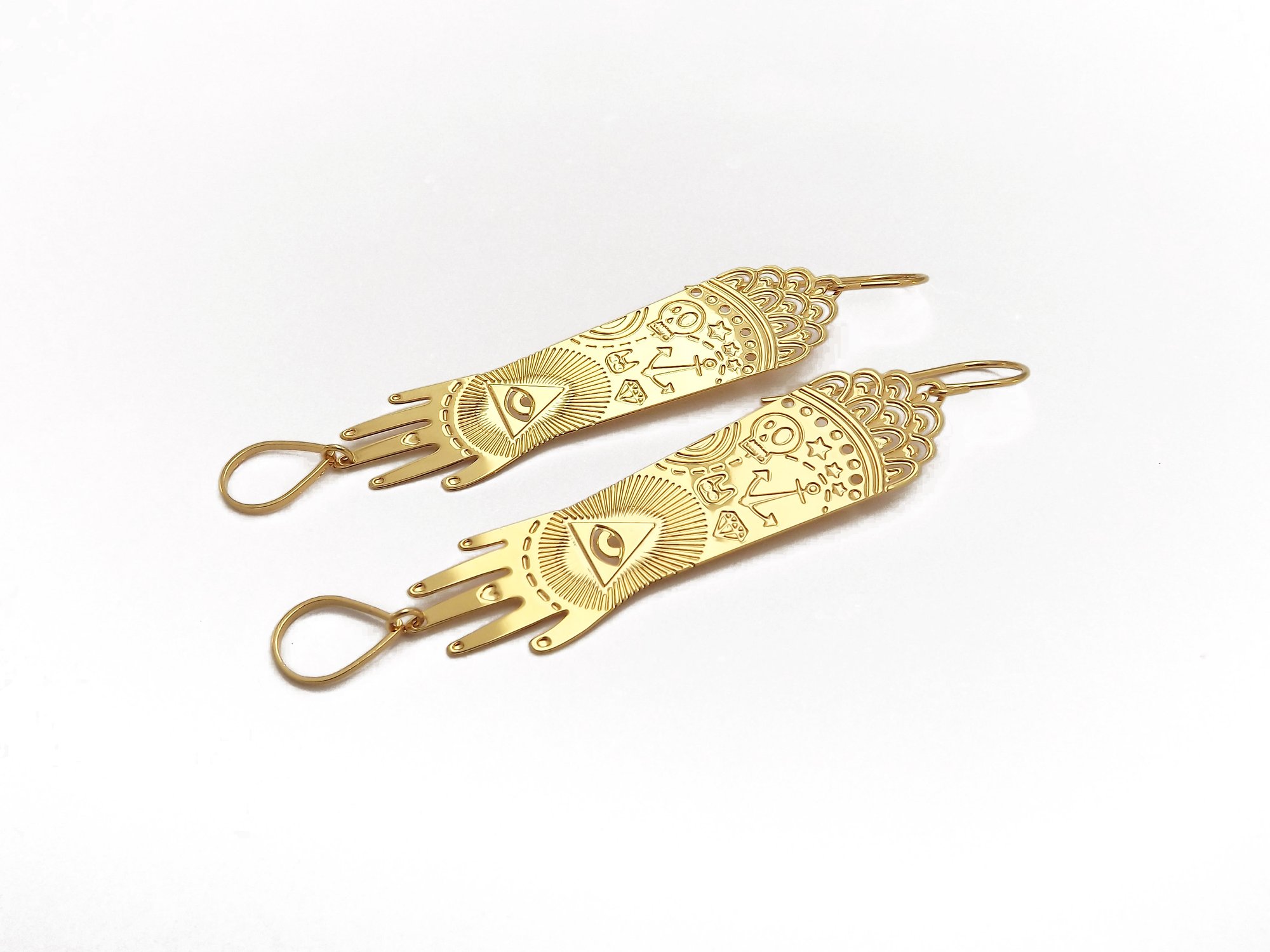 Pièce découpée et gravée en laiton doré à l'or fin 24 carats.