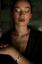 Laiton doré à l’or fin 24 carats, plaqué argent sur demande.