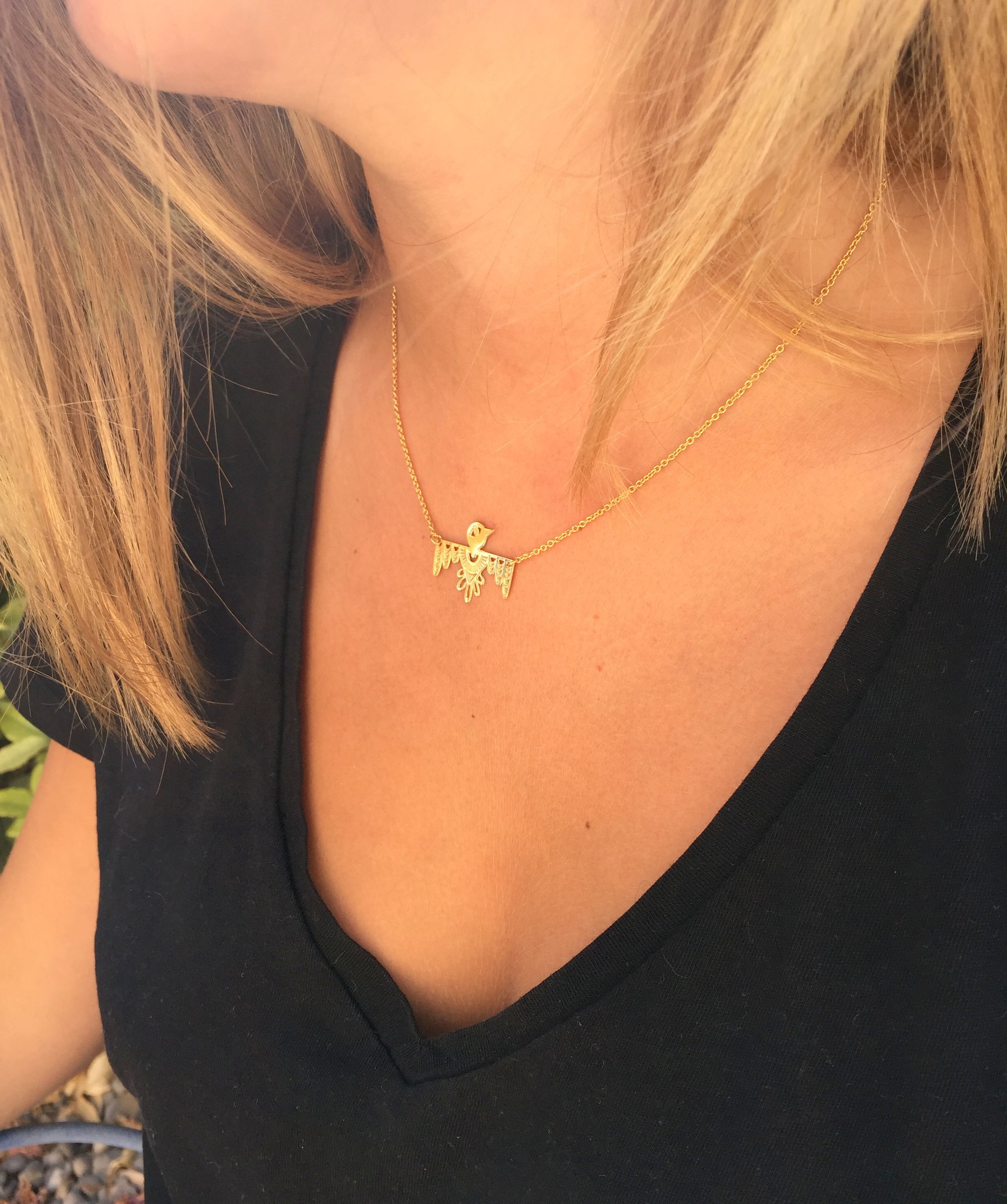 Collier Luckybird en laiton doré à l'or fin 24 carats.