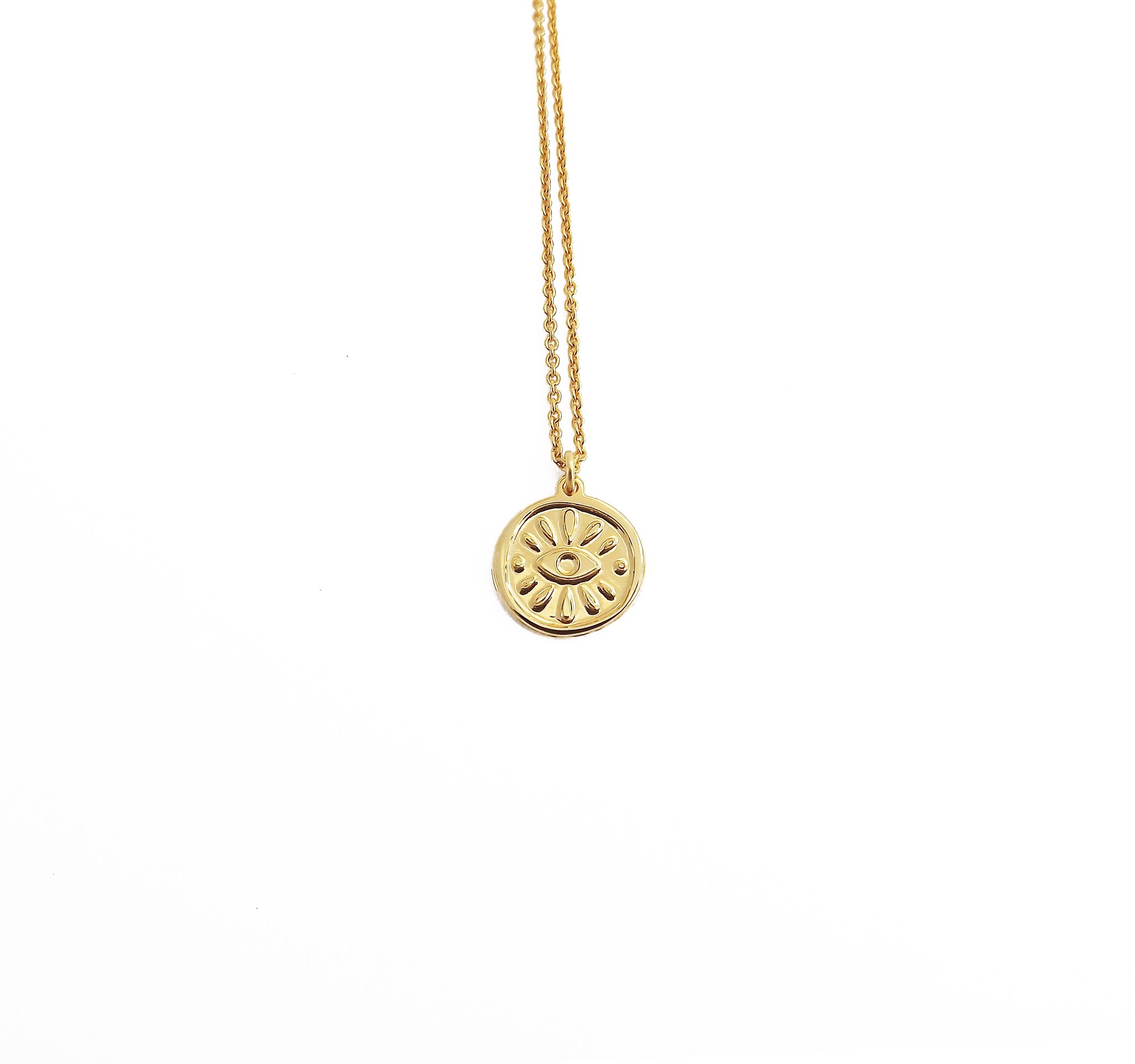 Collier Irma médaille œil doré à l'or fin 24 carats.