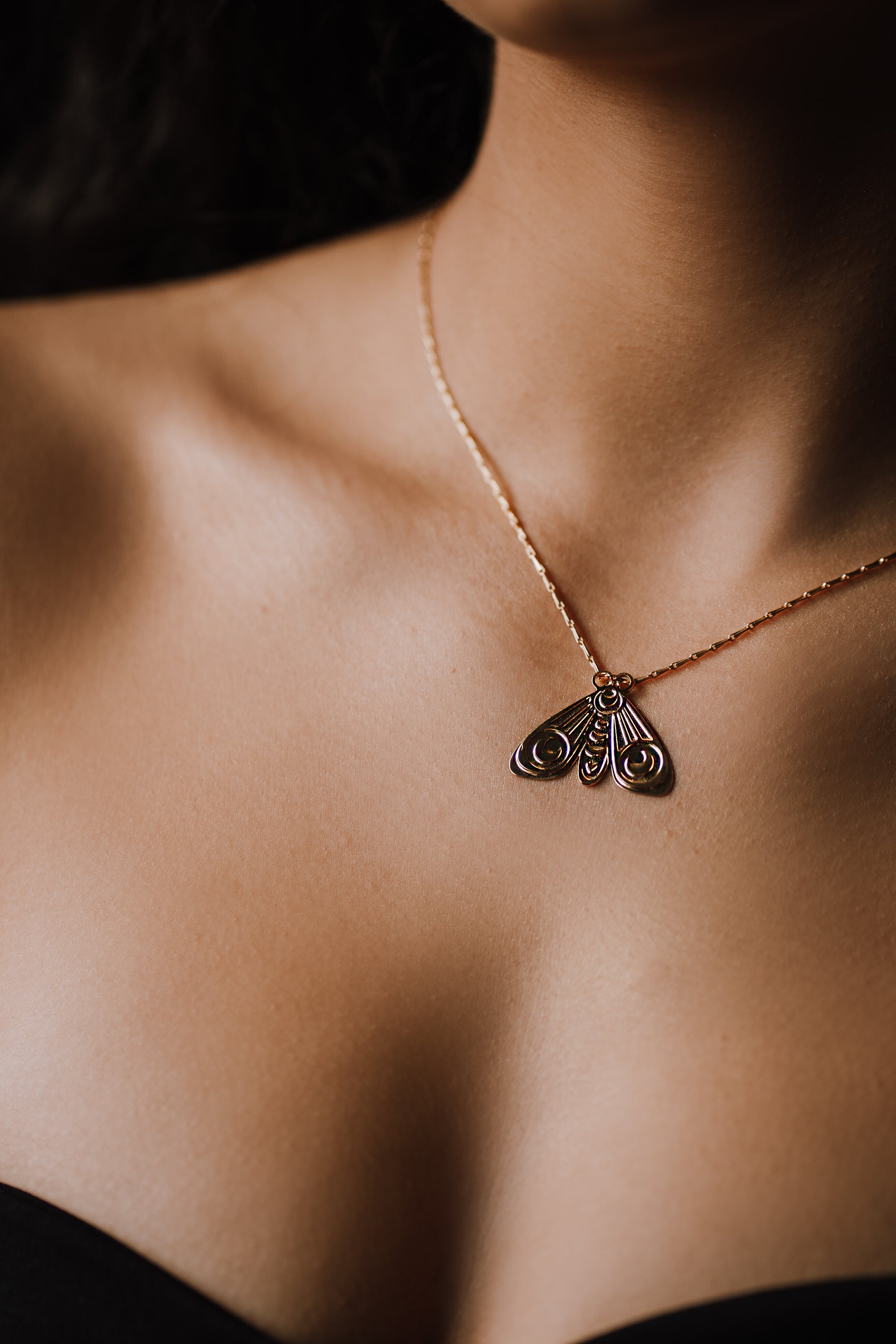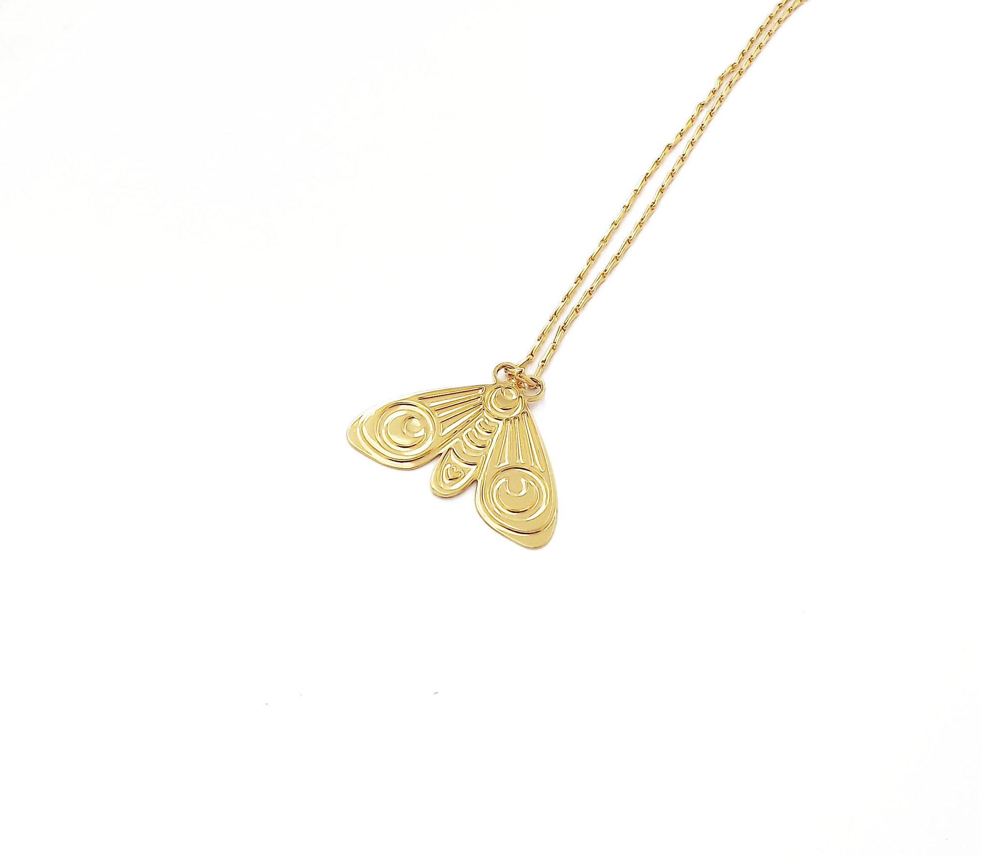 Collier Papillon de nuit doré à l'or fin 24 carats.