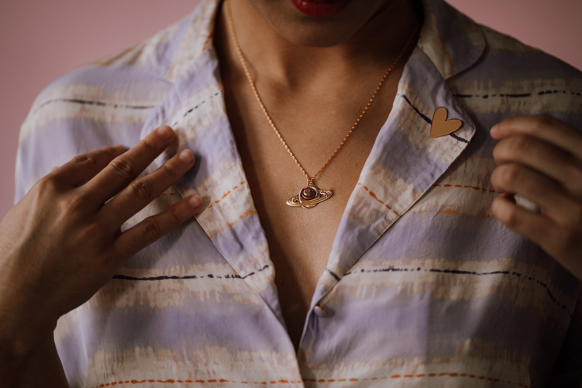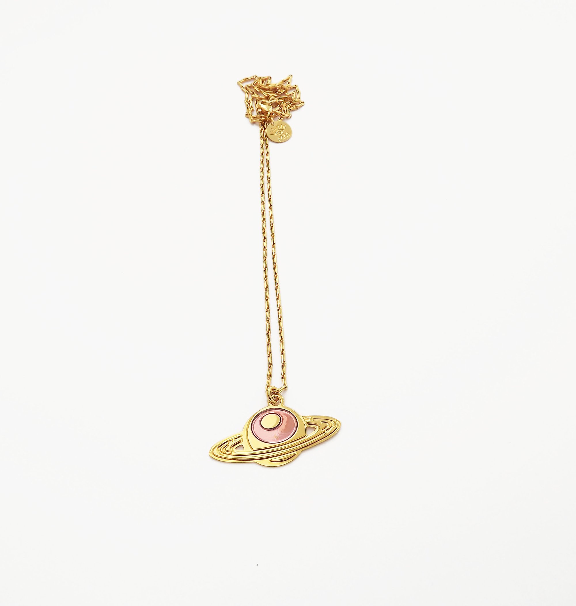 Collier Saturne doré à l'or fin 24 carats et émaillé à la main.